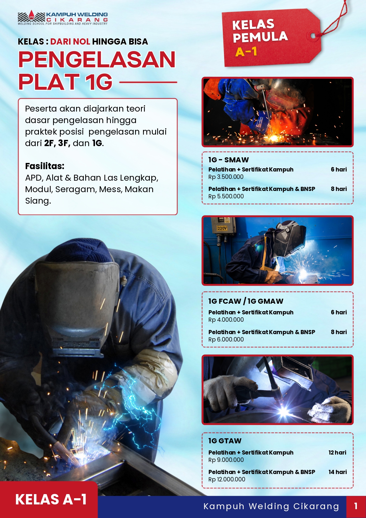 • Sertifikasi Welder: SMAW, GTAW, FCAW, GMAW, hingga kombinasi